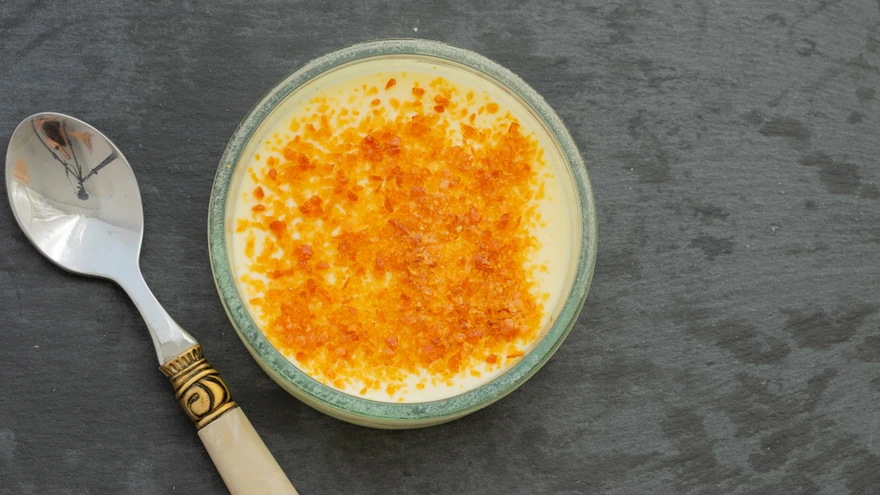Enne serveerimist raputa peale suhkrut ja põleta see krõbedaks spetsiaalse köögi-gaasipõletiga.