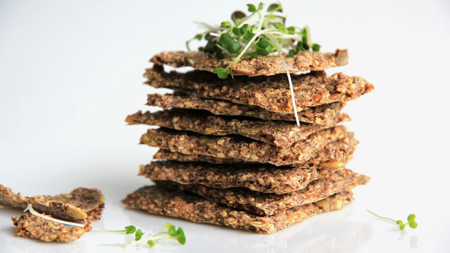 Võta plaat ahjus ja lõika väikesed neljakandilised tükid. Küpseta veel 20 minutit. Tõsta jahtuma ja lase näkileibadel öö läbi toatemperatuuril kuivada. Ära kata neid rätikuga.