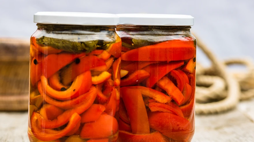 Vajuta paprikatükid, sibul ja küüslauk kihiti puhtasse purki. Kalla peale nii palju vett, et paprika oleks kaetud. Pane purki paprikate raskeseks peale kilekott veega. Kilekoti võib siduda pealt kinni või kasutada minigrip-sulguriga kotti. Keera purgile kaas peale.