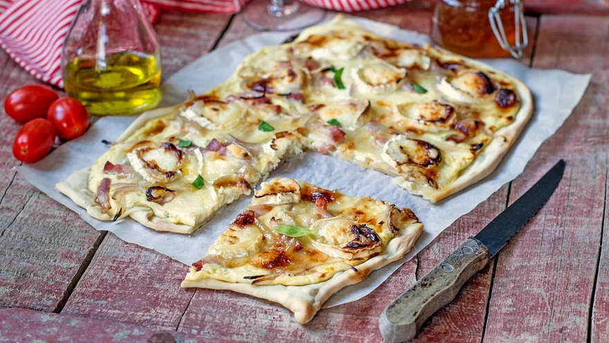 Kas see on valge pitsa või pirukas? Vahet pole: see on igatahes vastupandamatult maitsev ja koos salatiga suurepärane eine.
