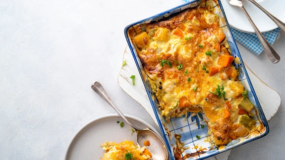 Pikalt ahjus küpsenud koorene köögiviljavorm sulab suus.