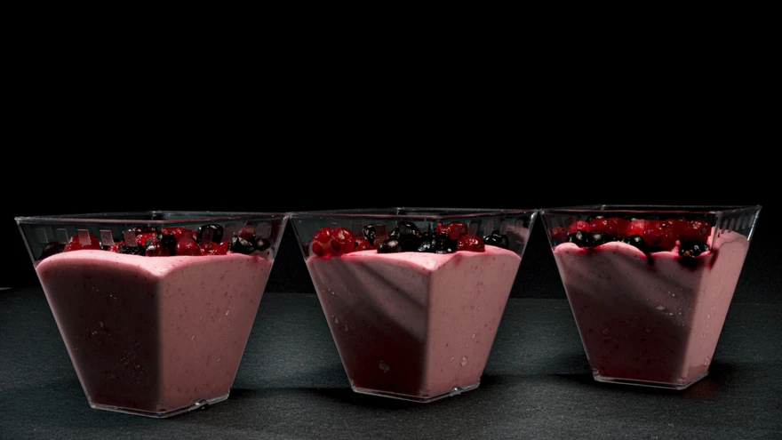 6. Tõsta pokaalidesse ja hoia mõni tund või järgmise päevani külmakapis. Enne serveerimist kaunista marjade ja tuhksuhkruga.