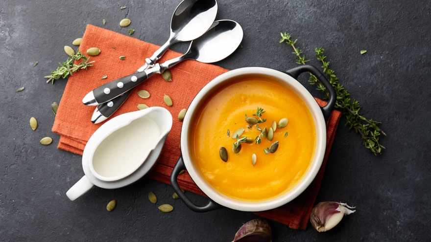 Ilusat värvi supp, mis annab energiat. Kui kõrvitsat pole, võib selle asendada näiteks kaalikaga.