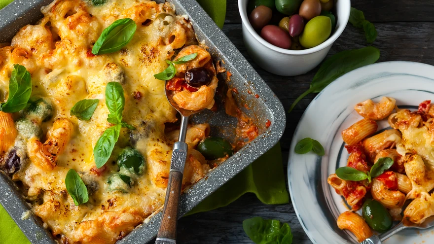 Raputa peale riivjuust, tõsta pann ahju ja küpseta 200-kraadises ahjus umbes 10 minutit, kuni pasta on küpsenud ja juust sulanud.