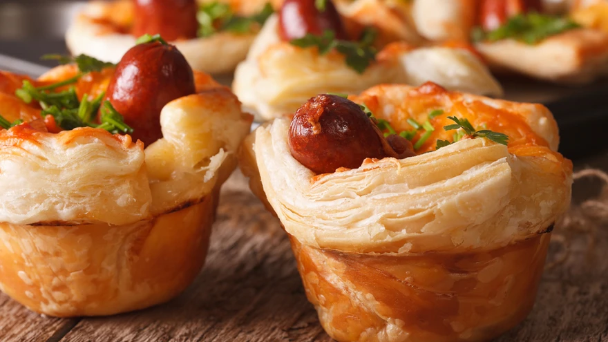 Võta tainapakk hommikul sulama. Rulli pisut sulanud tainas õhukeseks ja lõika võlja ruudud või ringid. Vajuta tainatükid võiga määritud muffinivormidesse või kasuta pabervorme.
