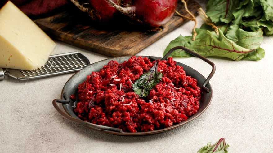 3. Kuumuta puljongit keemiseni. Lisa kulbitäishaaval puljongit riisile; järgmine kulbitäis tõsta potti siis, kui eelmine on imendunud. Kui riis on peaaegu küps, lisa sellele peedipüree ja kuumuta. Lõpuks puista risoto hulka riivitud kitsejuust ning maitsesta soola ja pipraga.
