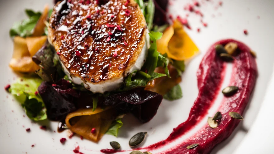 3. Lõika singiviilud pooleks ja pane peedi hulka. Kata röstsaiaviilud kitsejuustuga, lõika pooleks ja pane peetide peale. Tõsta ahjuplaat tagasi ahju ja küpseta veel 8-10 minutit, kuni sink on muutunud krõbedaks ja kitsejuust sulanud.