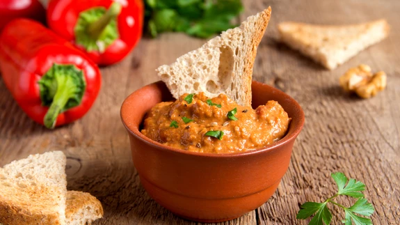 Pese ja poolita paprikad, eemalda seemned. Pane paprika ahjuvormi. Pritsi peale õli ja puista peale natuke soola. Küpseta 225-kraadises ahjus 20 minutit. Eemalda natuke jahtunud paprikatükkidelt koor ja haki viljaliha peeneks.