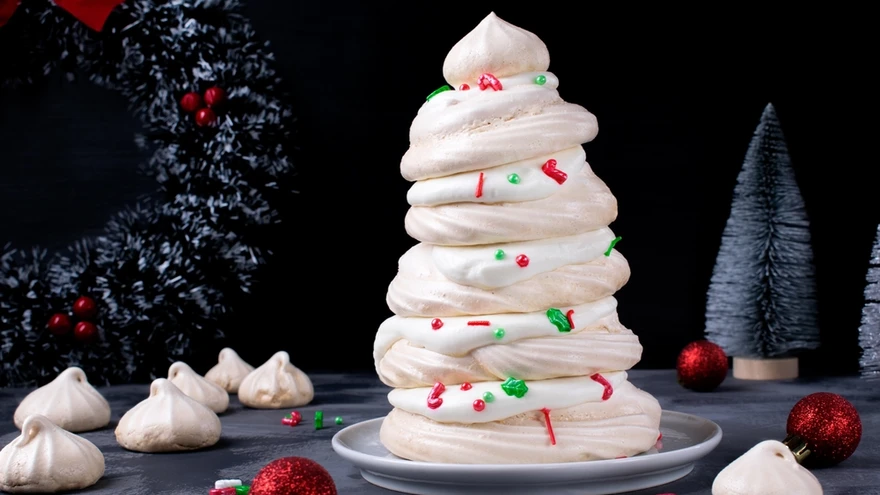 Vahusta munavalged koos paari tera soolaga pehmeks vahuks. Puista sisse kolmandik suhkrust ja vahusta veel, siis veel kolmandik ja vahusta, ning lõpuks viimane osa ning vahusta nüüd niikaua, kuni tekib paks, läikiv vaht. Lisa äädikas ja tärklis ning sega veel hetk.