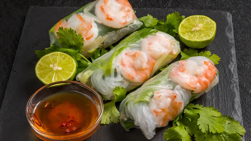 Kalla kaussi või vaagnale sooja vett. Kasta riisipaberid ükshaaval vette ja hoia seal natuke aega, kuni paber pehmeneb. Tõsta paber ettevaatlikult töölauale, pane peale täidis ja avokaadoviilud ning voldi kokku. Ära pane liiga palju täidist, siis jääb rull liiga suur ja võib rebeneda.