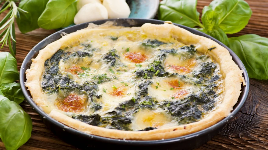 Sega põhja jaoks kokku omavahel segatud kuivad ained ja või. Lisa lõpuks külm vesi. Vajuta tainas võiga määritud pirukavormi (läbimõõt 25-27 cm) põhjale ja servadele. Pane vorm täidise valmistamise ajaks külmkappi. Kui teed väikesed pirukad, siis neid saab sellest kogusest neli tükki. Pane värsked lehtkapsad, spinatid või nõgeselehed korraks keeva vette, nõruta sõelas ja vajuta majapidamispaberiga kuivaks ja haki terava noaga peeneks. Sulata külmutatud spinat või nõges enne kasutamist. Kui kasutad kuivatatud nõgeseid, murenda lehed peenemaks puruks.