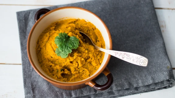 Tõsta ülipehmeks haudunud köögiviljad vahukulbiga sõelale ja suru puulusikaga läbi sõela. Korja välja pipraterad. Kurna ka ülejäänud puljong läbi sõela. Sega läbi sõela pressitud kastmepõhjale rõõsk või hapukoor, sega ja kuumuta. Serveeri lihalõikude juurde koos kartulipudru või keedukartuliga.