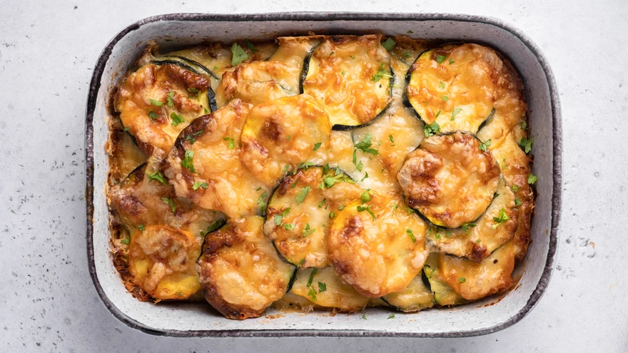 Lao ahjuvormi kordamööda suvekõrvitsalõike, hakklihasegu ja fetakuubikuid. Kalla peale munapiim, raputa peale riivjuust ja küpseta 200-kraadises ahjus pool tundi.