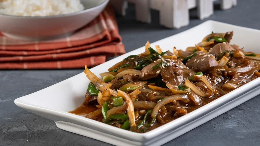 Maitsesta köögivili ja maks soola, musta pipra ja rosmariiniga. Vala pannile sojakaste ning kuumuta.