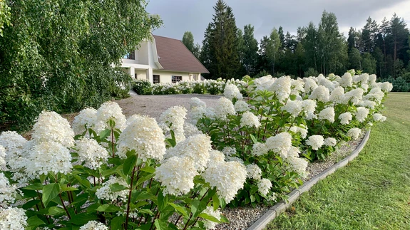 Ei võililli, ei orasheina, vaid hoopis õitevahus istutusalad okaspuude kõrval ja nende vahel voogav ühtlane sametine muruvaip. Silma ei jää midagi, mis häiriks ja harmooniat rikuks....