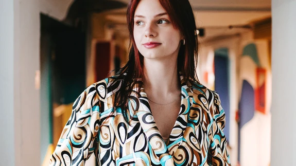 Siidisest viskooskangast hõlmikpluusil on külgedel kaks seost, millega pluusi paremini selga sättida. Kirjust kangast pluusi juurde vali ühevärvilised lisandid....