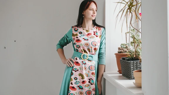 Trikooriidest lihtne kleit mõjub kohe viksi ja viisakana, kui sellele lisada uhke pandlaga vöö. Paneelidest koosneva kleidi saad õmmelda oma lemmiktooni kangastest....